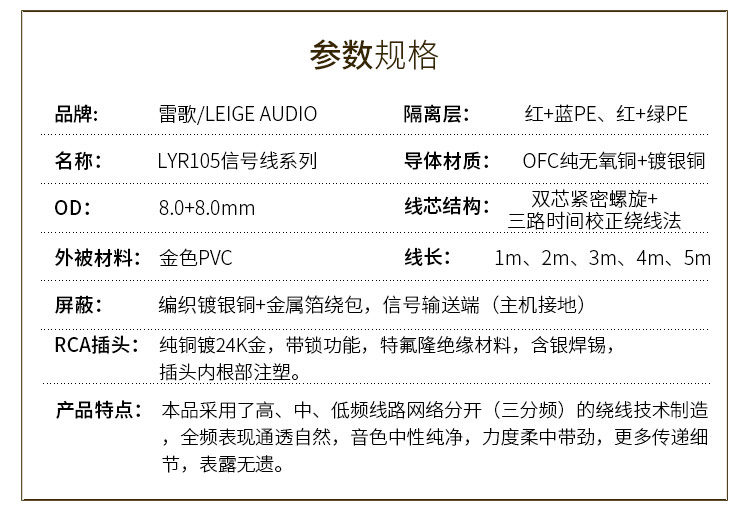 雷歌發燒級同軸鍍銀音頻線